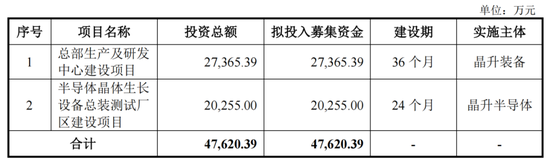 晶升股份于2023年4月登陆资本市场,其IPO募投项目涉及总部生产及研发中心建设、半导体晶体生长设备总装测试厂区建设,投资金额分别为2.74亿元、2.03亿元。不过,受行业需求阶段性放缓等影响,晶升股份已将测试厂区项目达到预定可使用状态时间延长至2027年12月31日。